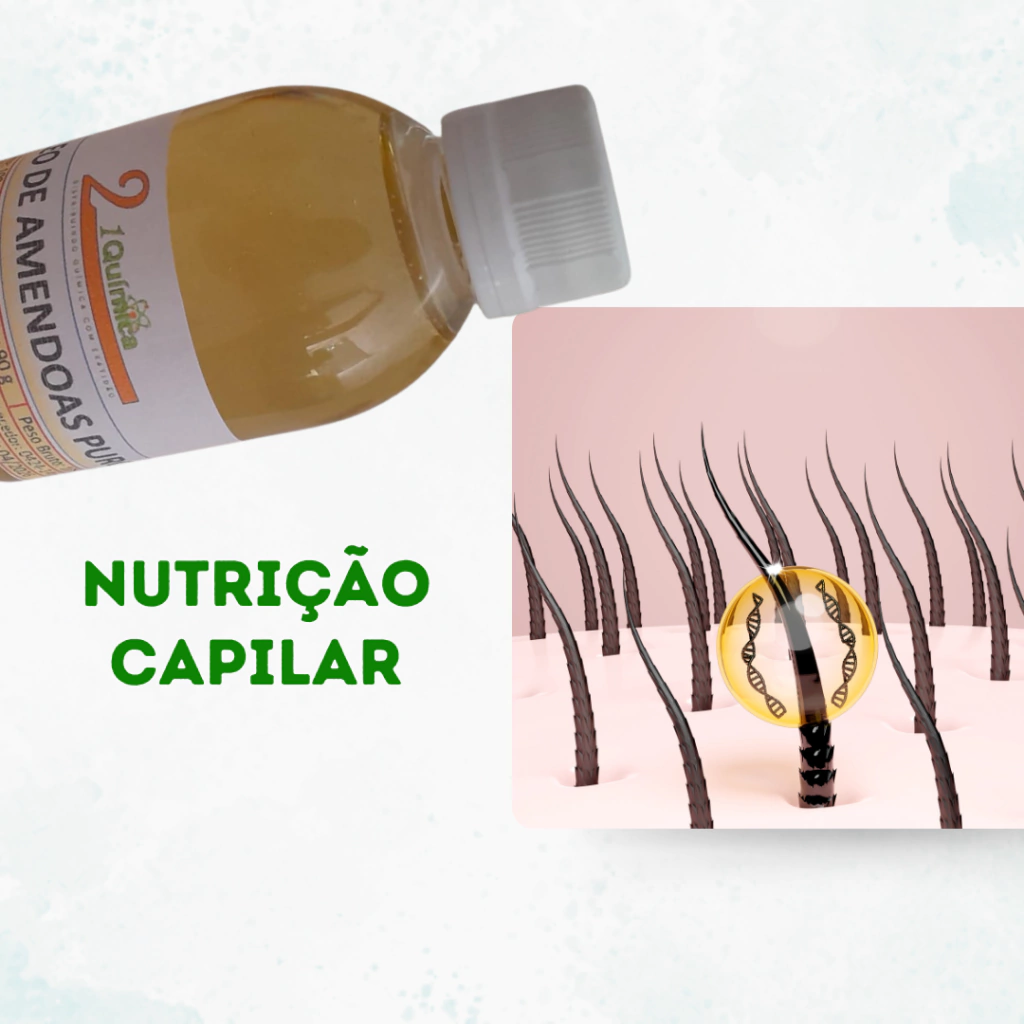 O óleo de amêndoas pode ser usado no cabelo para adicionar brilho, suavizar e desembaraçar os fios. Ele ajuda a nutrir e fortalecer o cabelo, prevenindo pontas duplas e quebras.